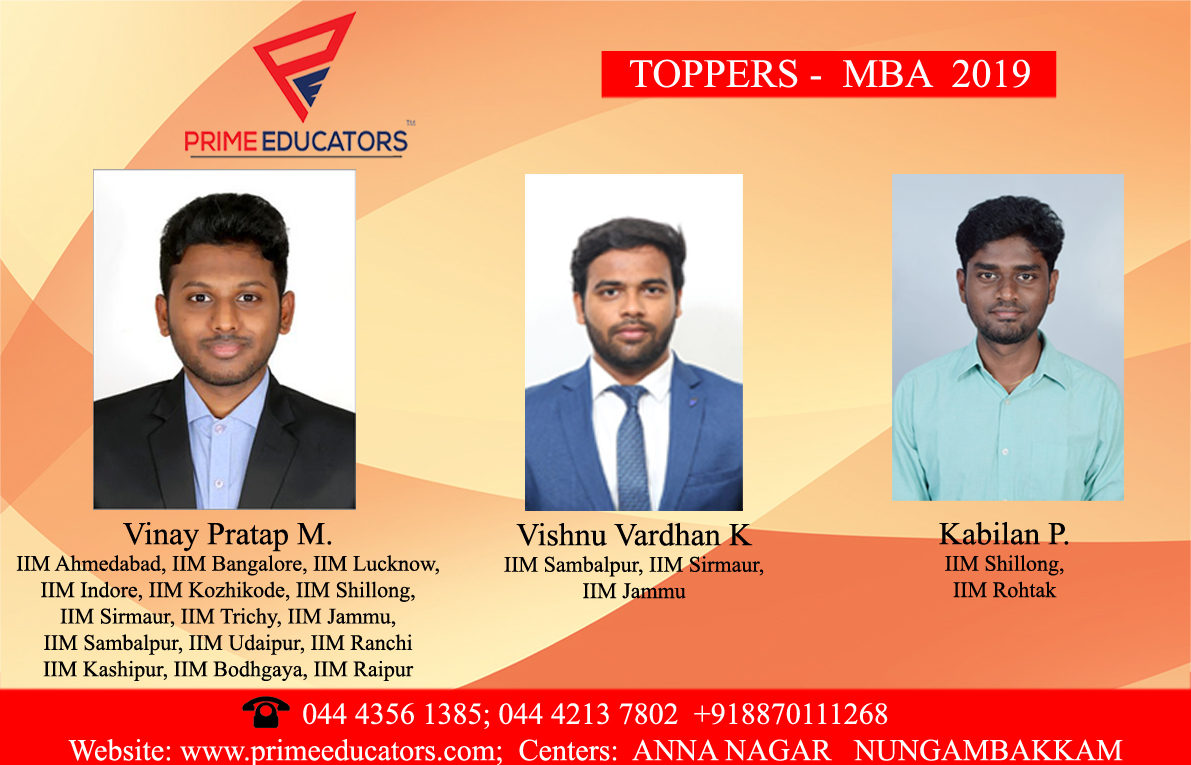 Prime Educators is one of the most prestigious institutes for CAT. Their online tests are very good. They provided me with flexible time schedules that helped me a lot. I would definitely recommend the program to anybody that wishes to ace CAT